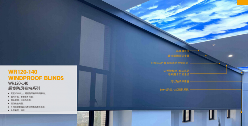如此强大的产能支撑之下,晾百年搭建了业内规格全、覆盖场景广的防风卷帘产品体系——对于大型商业空间、体育馆、酒店大堂等需要覆盖超高立面的场合,晾百年推出了WR200-220超高防风卷帘系统。该系统采用五轴承双支撑平衡器等强化机构,专为高达12米的超高防风卷帘的应用设计,有效解决超高防风卷帘运行不稳、受力不均的行业难题。